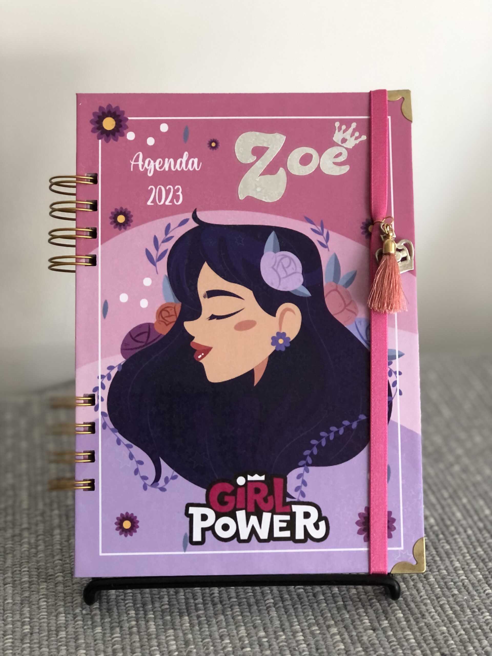 Agenda con nombre personalizado en la portada, separador de hojas y un lapicero