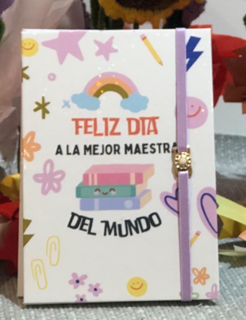 Agenda con nombre personalizado en la portada, separador de hojas y un lapicero